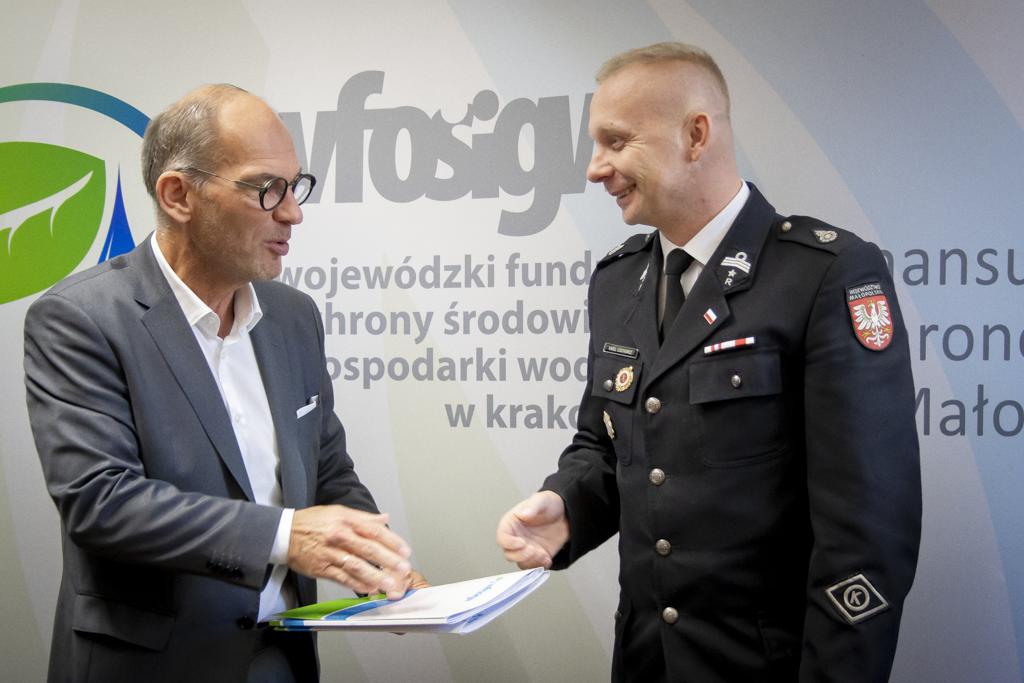 150 tys. zł strażacy otrzymali w ramach dotacji z programu „Mobilny Strażak”. Kolejne 150 tys. przekazane zostało w formie preferencyjnej pożyczki udzielonej przez WFOŚiGW w Krakowie. Dzięki temu strażacy mogą już korzystać z nowoczesnego środka transportu ratowniczego.