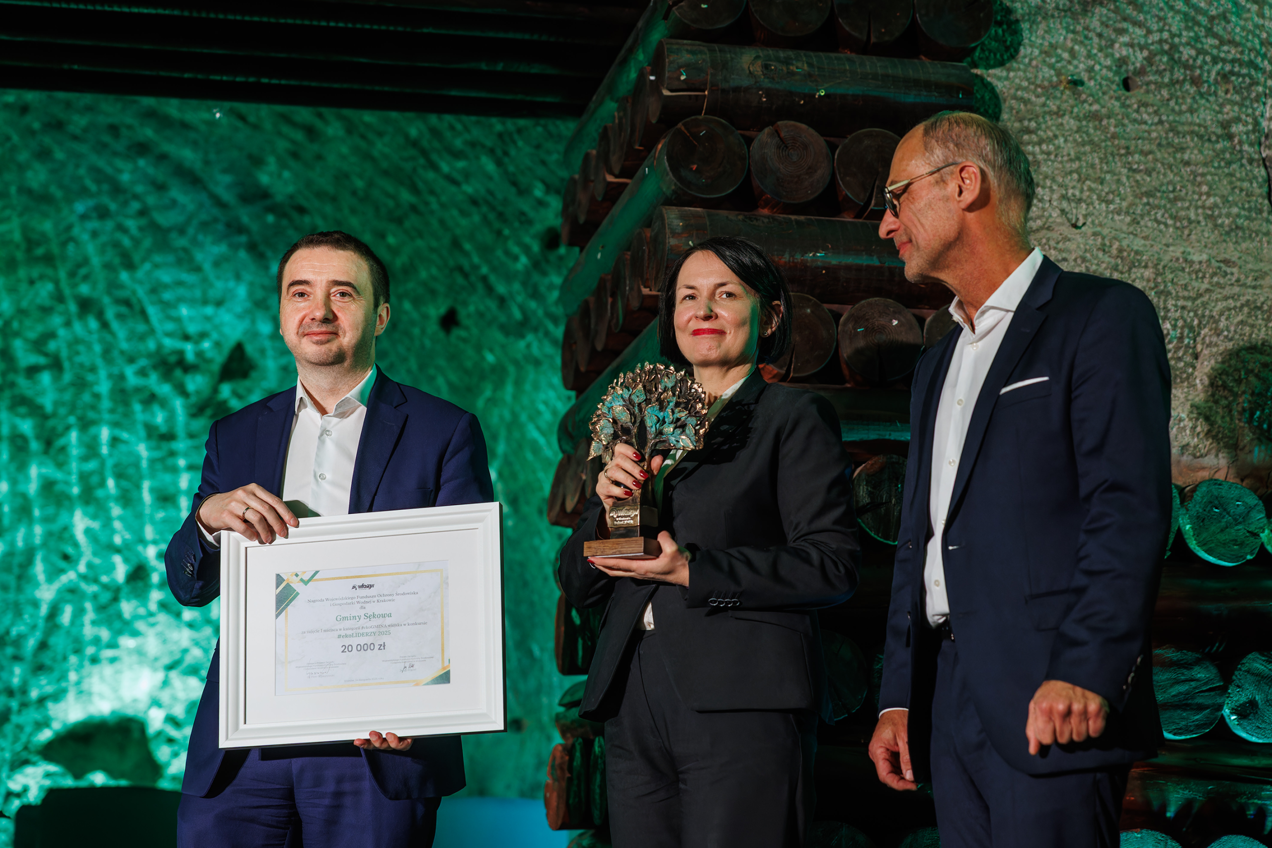 za intensywne działania m.in. na rzecz upowszechnienia ekologicznych źródeł ogrzewania, za przedsięwzięcia na rzecz poprawy jakości powietrza w gminie, jak również za akcje posadzenia niemal 2 tysięcy drzew i usunięcia ponad 22 ton azbestu