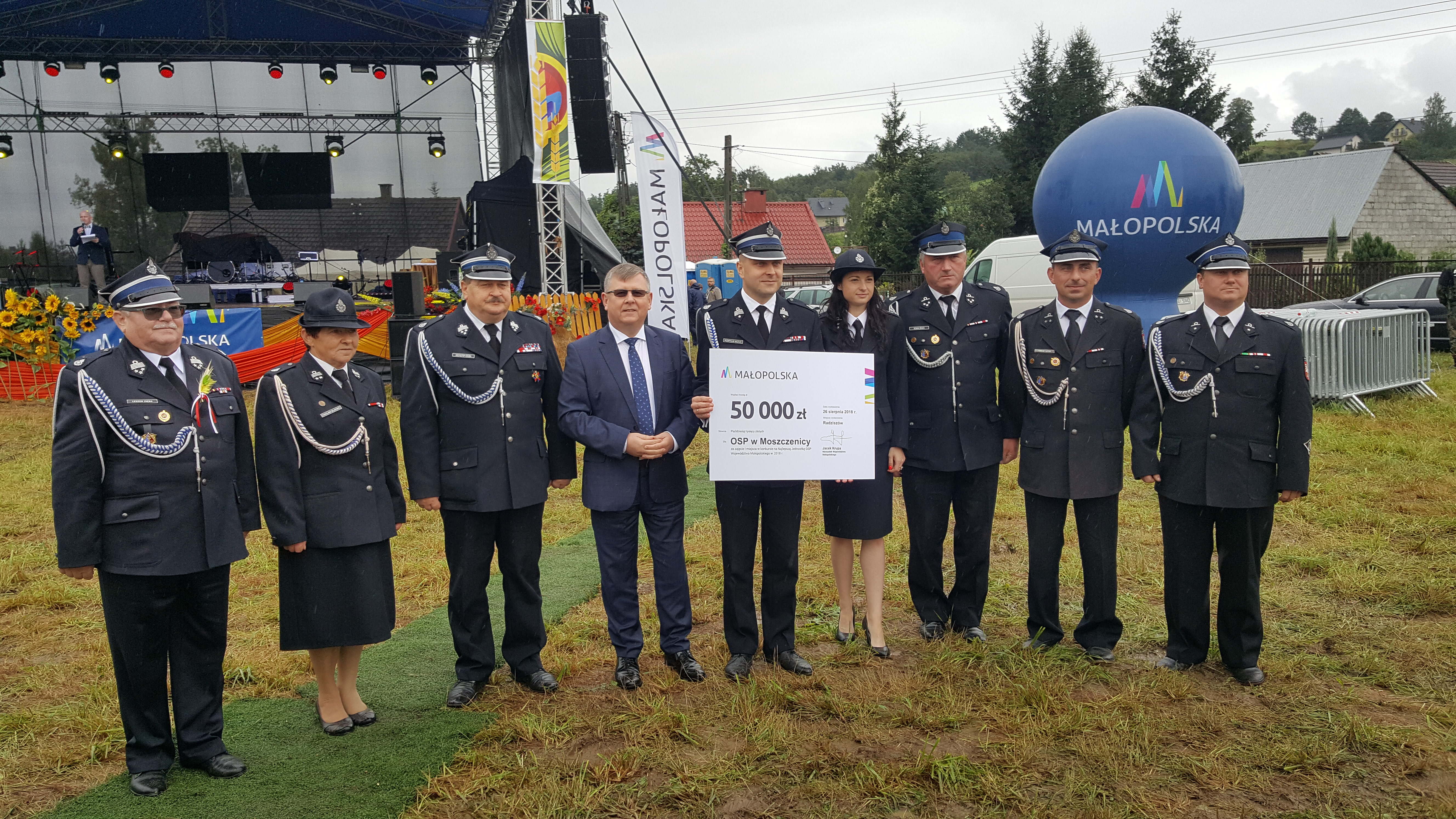 26 sierpnia 2018 r. w Radziszowie odbyły się XX Dożynki Wojewódzkie. W ramach uroczystości wręczone zostały nagrody i wyróżnienia przyznane w ramach Konkursu „Najlepsza Jednostka OSP Województwa Małopolskiego 2018 r.” współorganizowanego z Oddziałem Wojewódzkim Związku Ochotniczych Straży Pożarnych RP Województwa Małopolskiego. Laureatem I nagrody jest OSP w Moszczenicy. Uczestniczący w uroczystości Pan Witold Kozłowski – Prezes WFOŚiGW w Krakowie, w imieniu Zarządu Wojewódzkiego Funduszu wręczył nagrody za: