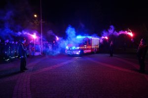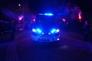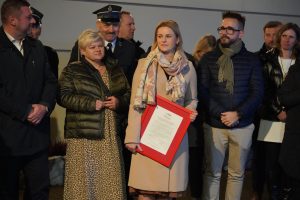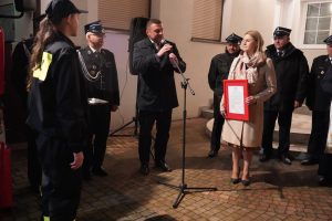 Podczas uroczystości przekazania pojazdu obecna była także przedstawicielka Funduszu, która pogratulowała strażakom i wręczyła pamiątkowy dyplom.
