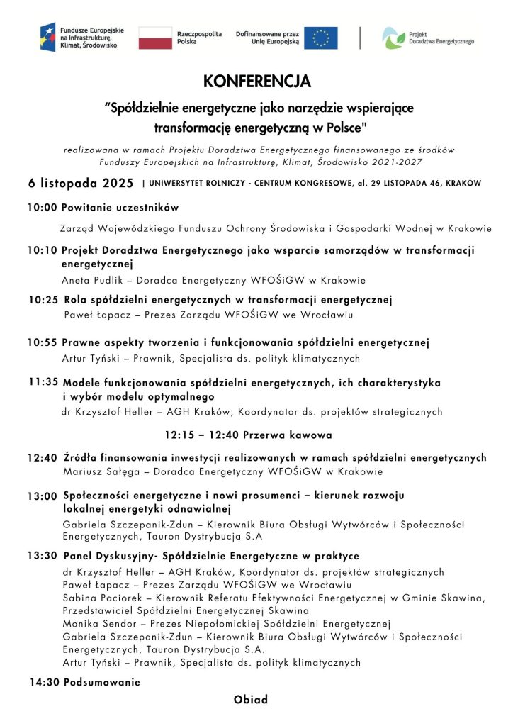 Serdecznie zapraszamy na Konferencję pn. “Spółdzielnie energetyczne jako narzędzie wspierające transformację energetyczną w Polsce” organizowaną w dniu 6.11.2025 r.