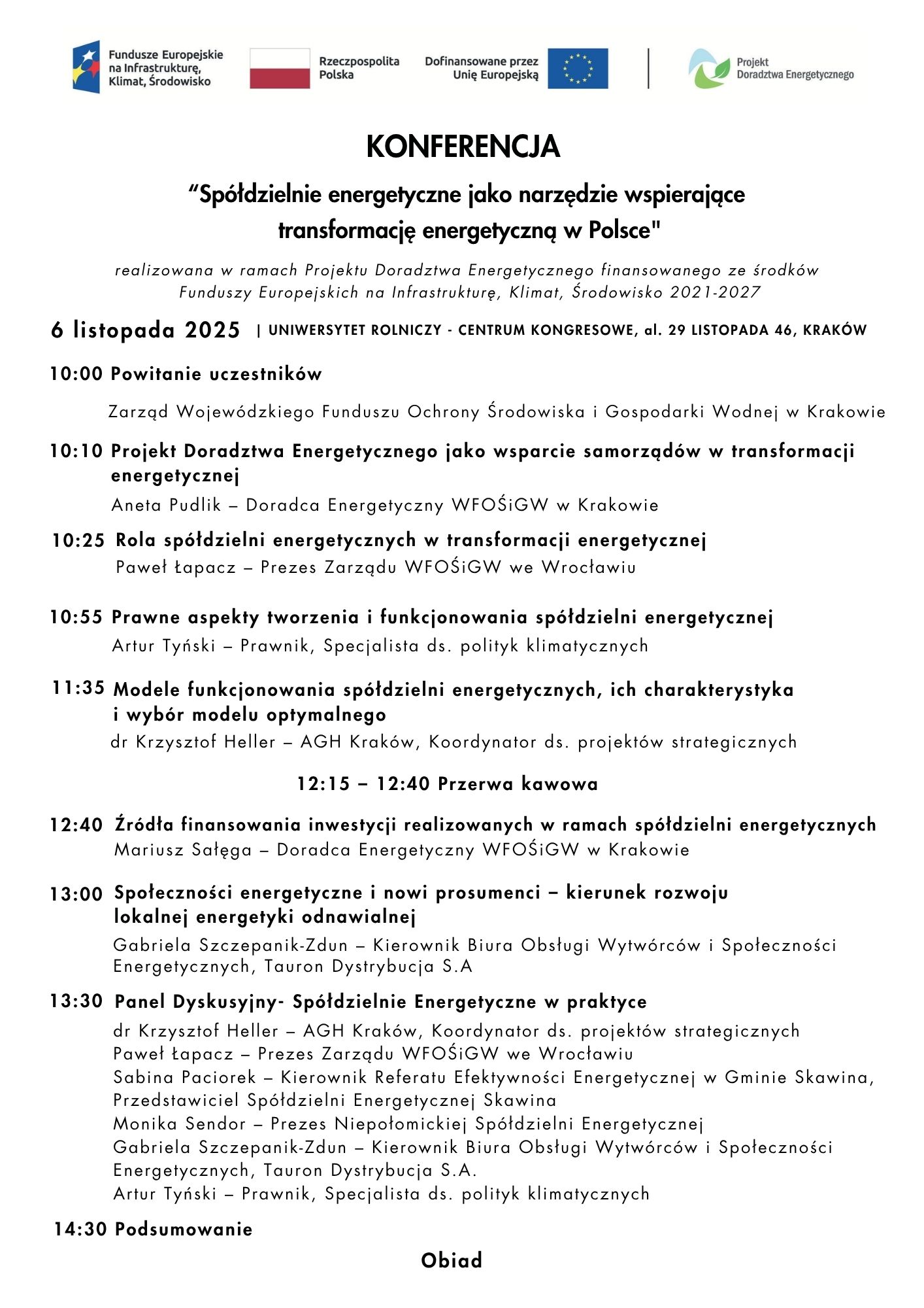 Serdecznie zapraszamy na Konferencję pn. “Spółdzielnie energetyczne jako narzędzie wspierające transformację energetyczną w Polsce” organizowaną w dniu 6.11.2025 r.